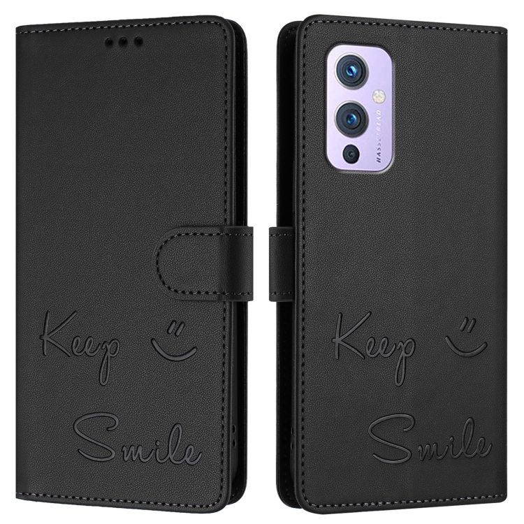 Funda de Cuero Rfid con Relieve Sonriente para OnePlus 9 (Negra)