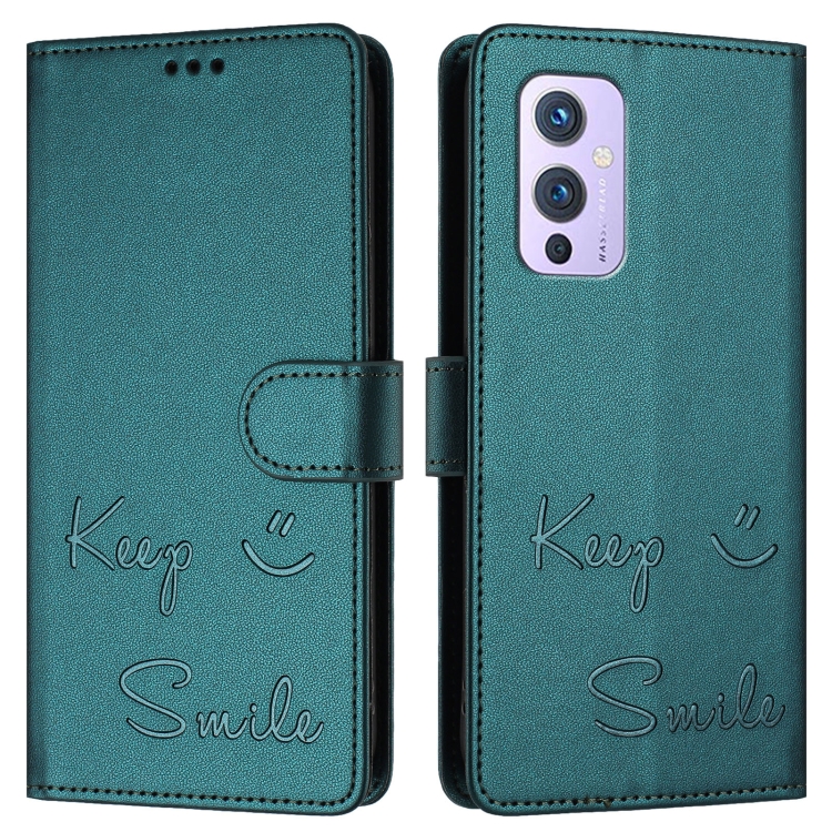 Funda de Cuero Rfid para OnePlus 9 con Relieve Sonriente (Verde Pavo Real)
