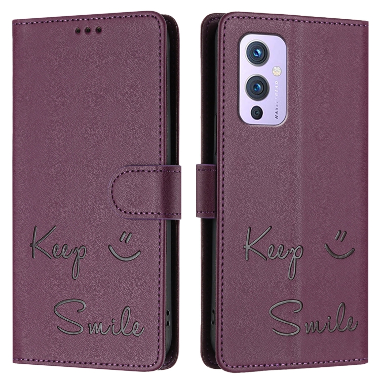 Funda de Cuero Rfid con Relieve Sonriente para OnePlus 9 (Violeta)