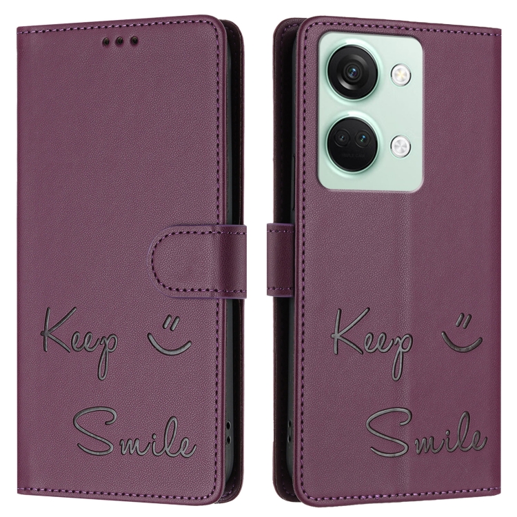 Funda de Cuero Rfid con Relieve Sonriente para OnePlus Ace 2V/Nord 3 (Violeta)