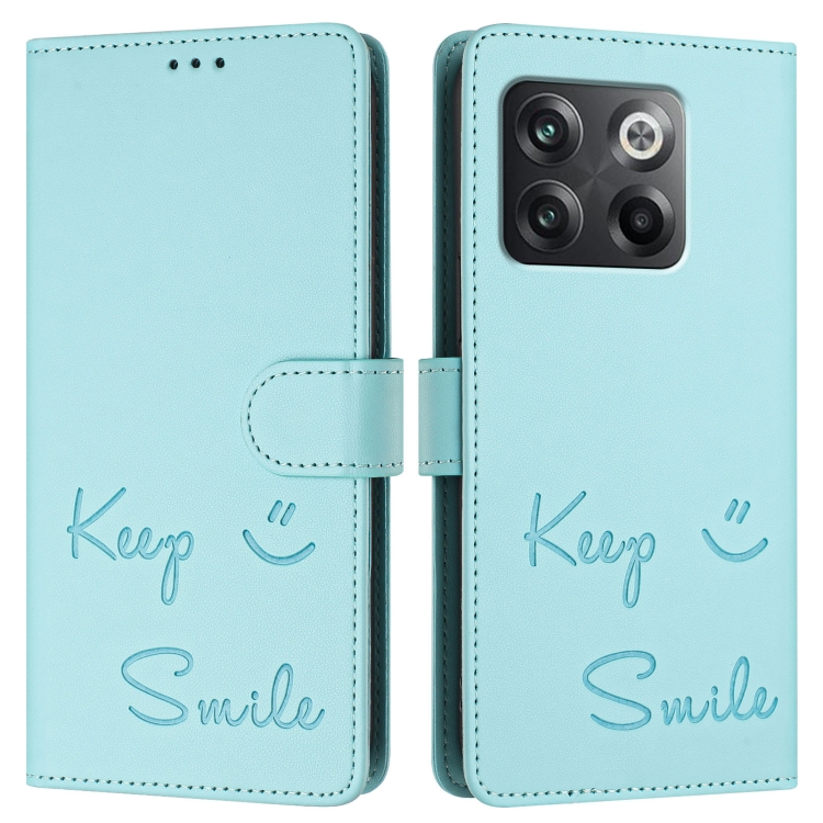 Funda de Cuero Rfid con Relieve Sonriente para OnePlus Ace Pro/10T (Verde Menta)
