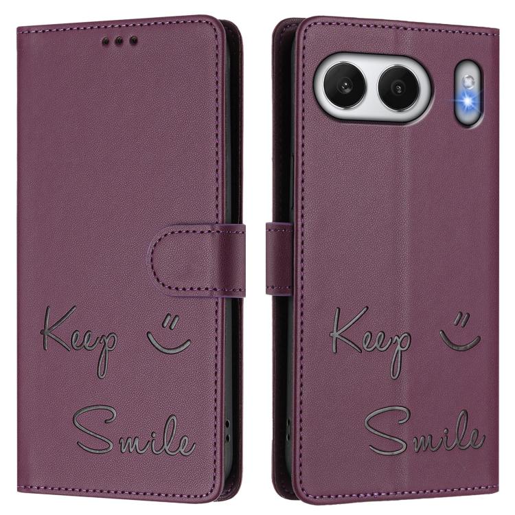 Funda de Cuero Rfid con Relieve Sonriente para OnePlus Nord 4 5G (Violeta)