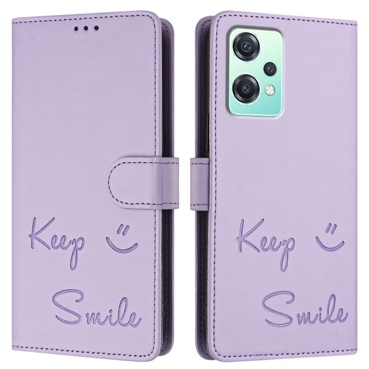 Funda de Cuero Rfid con Relieve Sonriente para OnePlus Nord Ce 2 Lite 5G (Morado Claro)