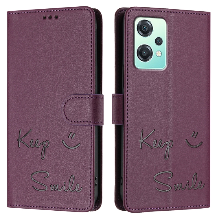 Funda de Cuero Rfid con Relieve Sonriente para OnePlus Nord Ce 2 Lite 5G (Violeta)