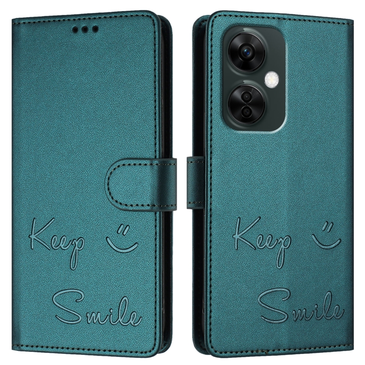 Funda de Cuero Rfid con Relieve Sonriente para OnePlus Nord Ce 3 Lite/Nord N30 (Verde Pavo Real)