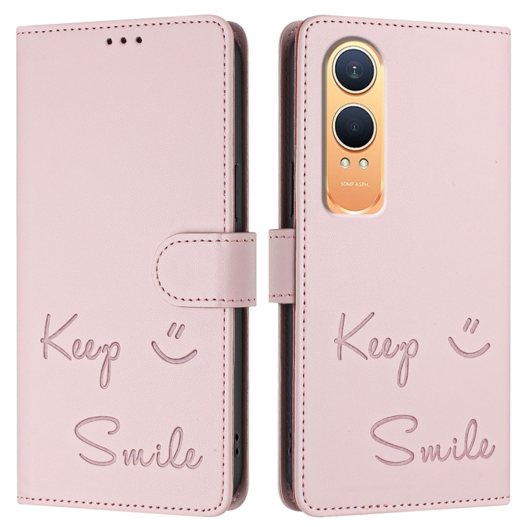 Funda de Cuero Rfid para OnePlus Nord Ce4 Lite con Relieve Sonriente (Rosa)
