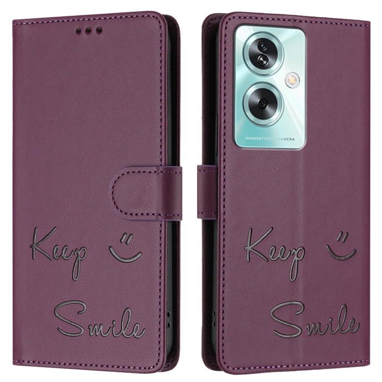 Funda de Cuero Rfid con Relieve Sonriente para OnePlus Nord N30 Se (Violeta)