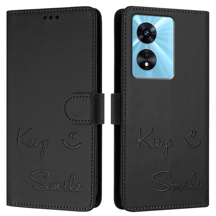 Funda de Cuero Rfid con Relieve Sonriente para OnePlus Nord N300 (Negra)