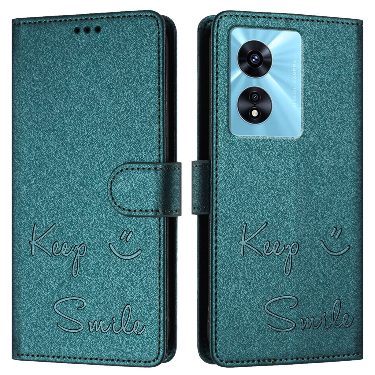 Funda de Cuero RFID con Relieve Sonriente para OnePlus Nord N300 (Verde Pavo Real)