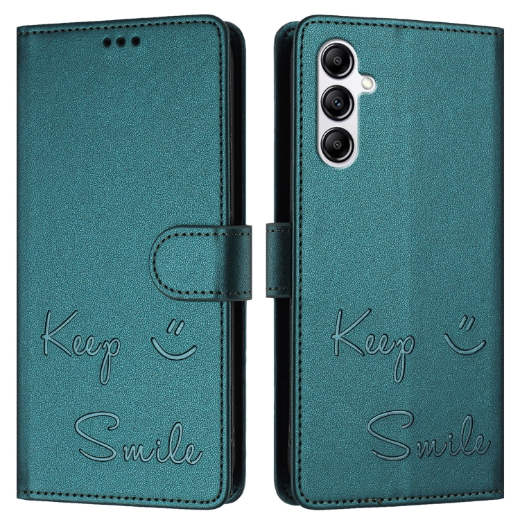 Funda Cuero Rfid Samsung Galaxy A14 5G/4G Relieve Sonriente (Verde Pavo Real)