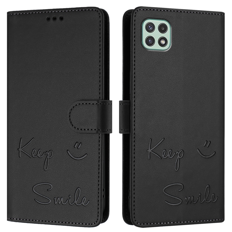 Funda Cuero Rfid Samsung Galaxy A22 5G A22S F42 5G Relieve Sonriente (Negra)