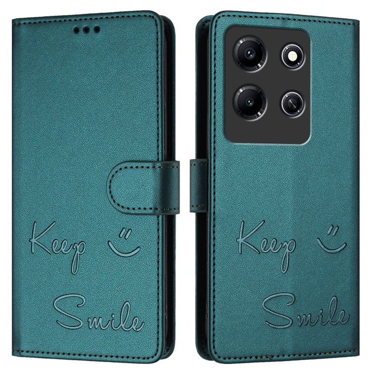 Funda de Cuero Rfid con Relieve Sonriente para Teléfono Infinix Note 30I (Verde Pavo Real)