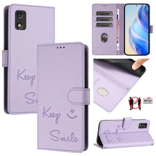 Funda de Cuero Rfid con Relieve Sonriente para Teléfono Itel A23 Pro/A17 (Morado Claro)