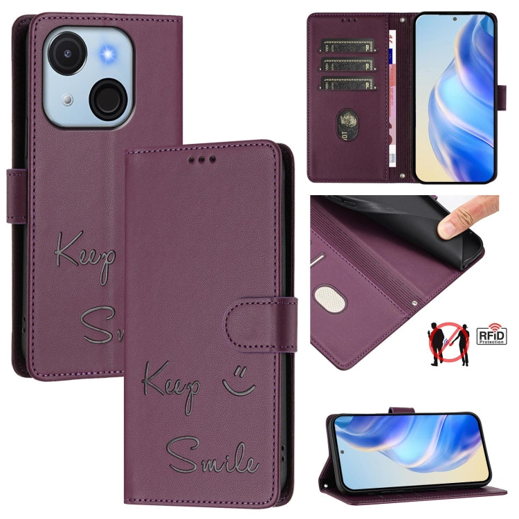 Funda de Cuero Rfid con Relieve Sonriente para Teléfono Itel A50C (Violeta)