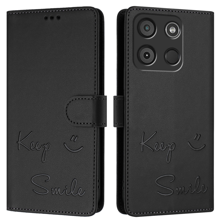 Funda de Cuero Rfid con Relieve Sonriente para Teléfono Itel A60/A60S (Negra)
