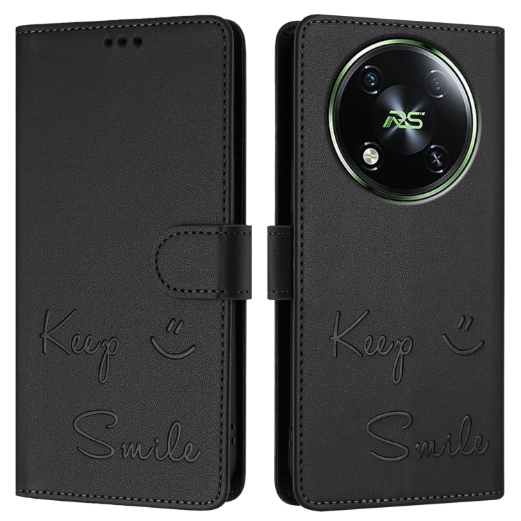 Funda de Cuero Rfid con Relieve Sonriente para Teléfono Itel Rs4 S666Ln (Negra)
