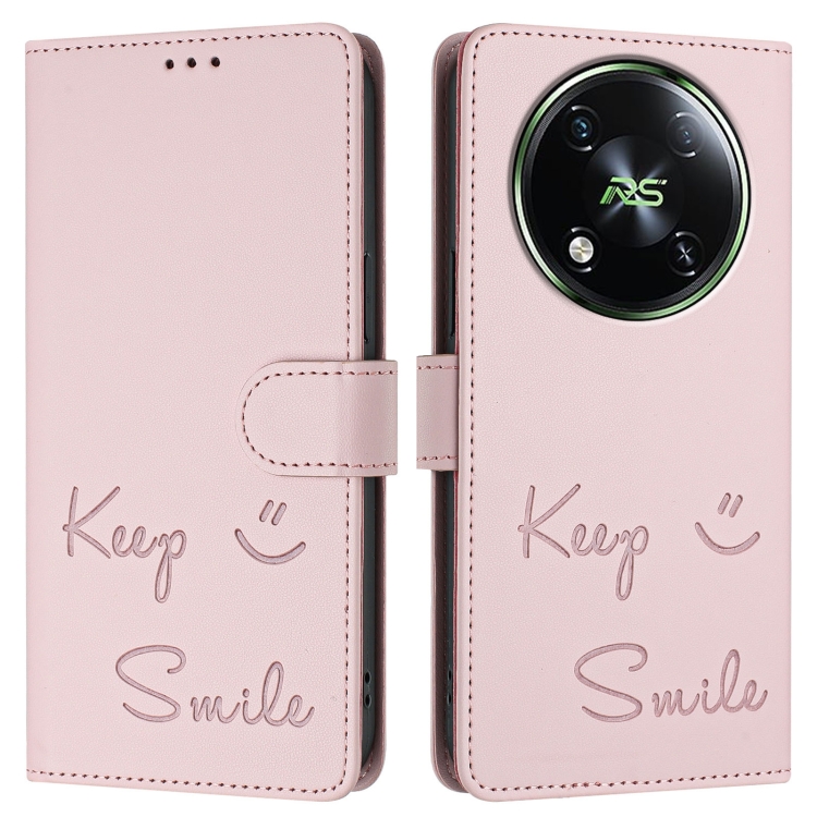Funda de Cuero Rfid con Relieve Sonriente para Teléfono Itel Rs4 S666Ln (Rosa)