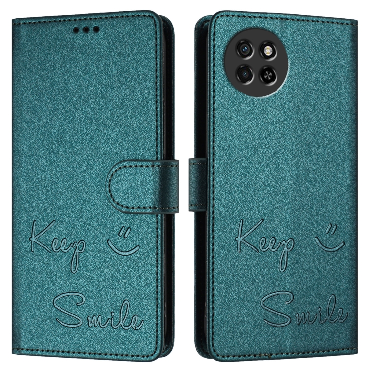 Funda de Cuero Rfid con Relieve Sonriente para Teléfono Itel S23 S665L (Verde Pavo Real)