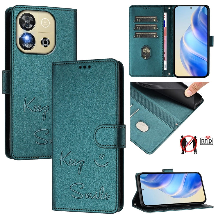 Funda de Cuero Rfid con Relieve Sonriente para Teléfono Oukitel C57S (Verde Pavo Real)