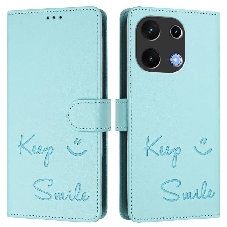 Funda de Cuero Rfid con Relieve Sonriente para Umidigi Note 100 (Verde Menta)