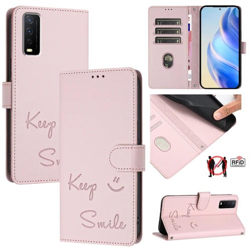 Funda de Cuero Rfid con Relieve Sonriente para Vivo Y20 / Y20I / Y20S / Y11S (Rosa)