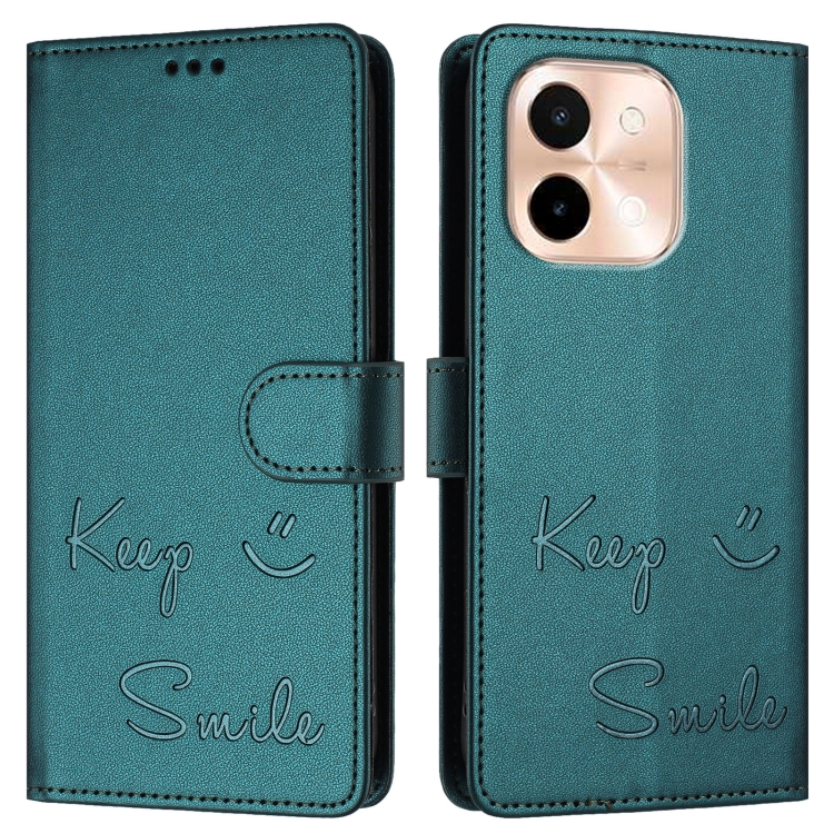 Funda de Cuero Rfid con Relieve Sonriente para Vivo Y28 4G (Verde Pavo Real)