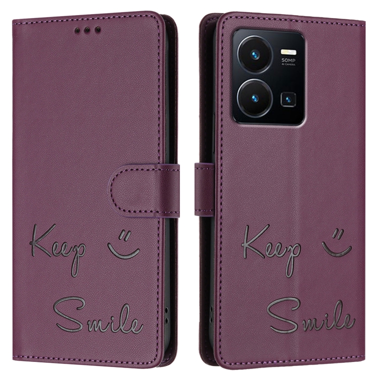 Funda de Cuero Rfid con Relieve Sonriente para Vivo Y77 5G Global / Y77E 5G (Violeta)