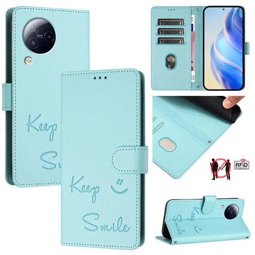 Funda de Cuero Rfid con Relieve Sonriente para Xiaomi Civi 3 (Verde Menta)