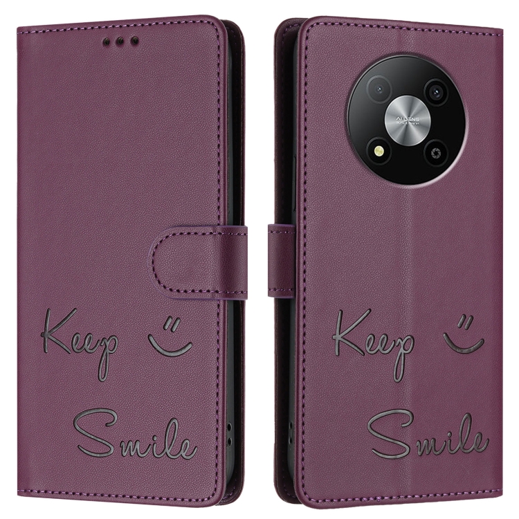 Funda de Cuero Rfid con Relieve Sonriente para ZTE Blade A73 5G (Violeta)