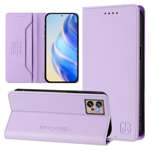 Funda de Cuero Rfid para Motorola Moto G32 Rc01 con Succión Magnética y Doble Pliegue (Morado Claro)