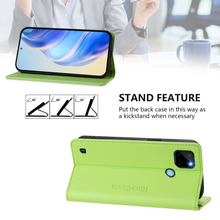 Funda de Cuero Rfid con Succión Magnética y Doble Pliegue para Realme C21Y Rc01 (Verde Hierba)