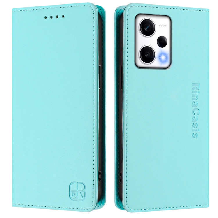 Funda de Cuero Rfid con Succión Magnética y Doble Pliegue para Redmi Note 12 Explorer Rc01 (Verde Menta)