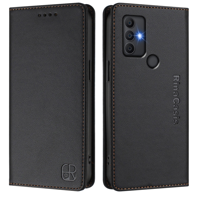 Funda de Cuero Rfid con Succión Magnética y Doble Pliegue para TCL 305/306 Rc01 (Negra)