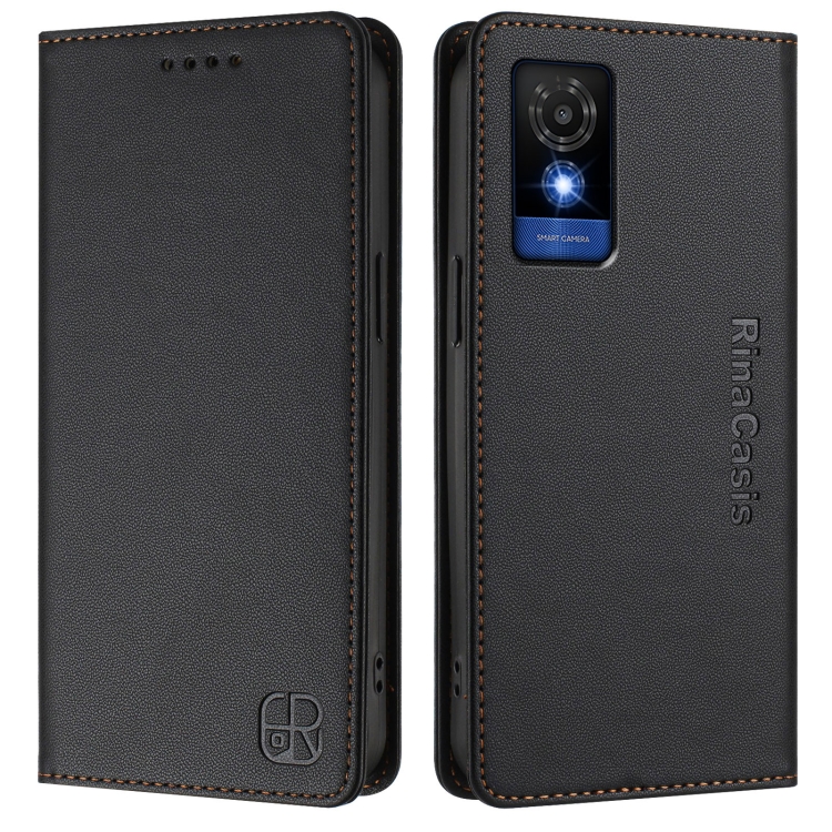 Funda de Cuero Rfid con Succión Magnética y Doble Pliegue para TCL 501 Rc01 (Negra)