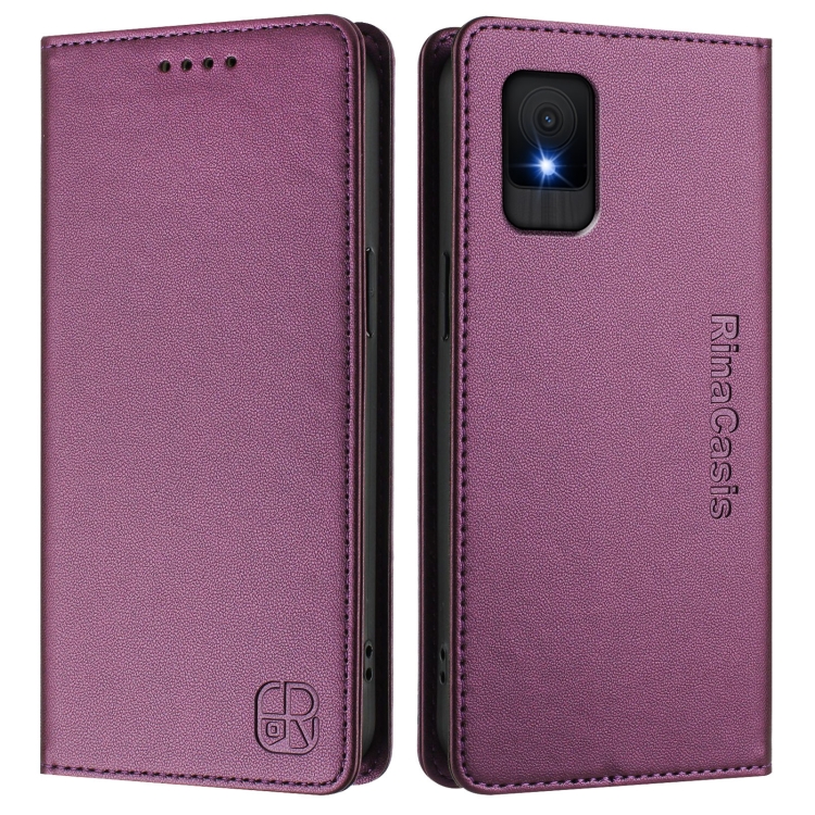 Funda de Cuero Rfid con Succión Magnética y Doble Pliegue para Teléfono TCL 502 Rc01 (Violeta)