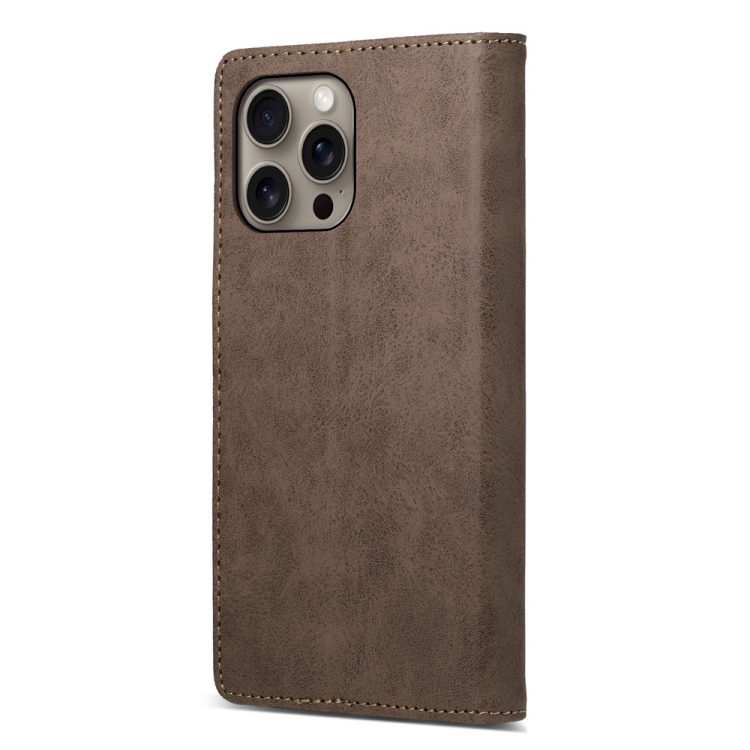 Funda de Cuero Rfid Magnética para iPhone 16 Pro Max (Marrón)