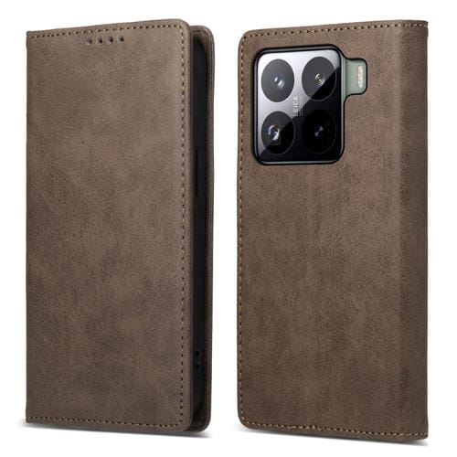 Funda De Cuero Rfid Magnética Para Xiaomi 15 Business (Marrón)