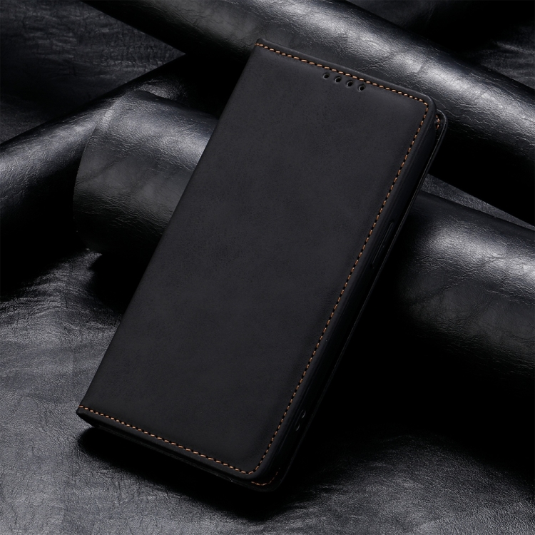 Funda De Cuero Rfid Magnética De Color Sólido Para Xiaomi 15 Pro Business (Negro)