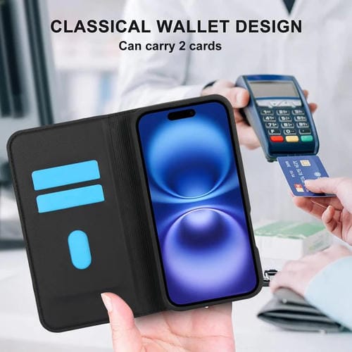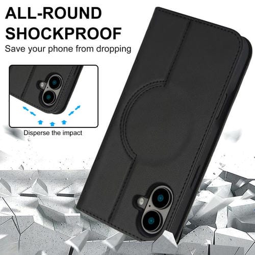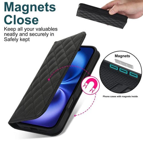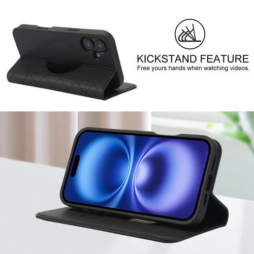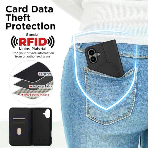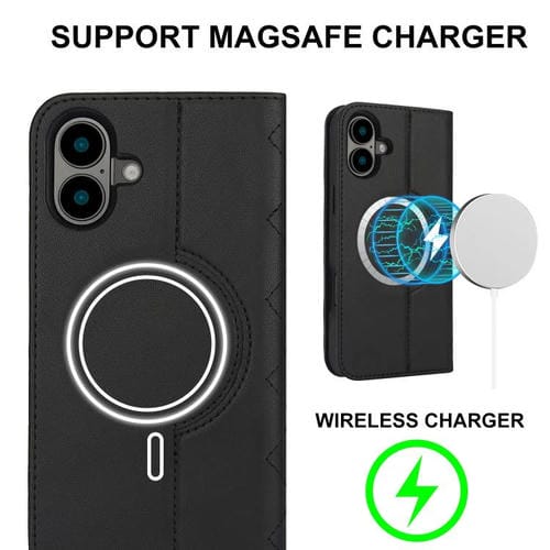 Funda de cuero Rhombic MagSafe RFID antirrobo para iPhone 17 (negra)