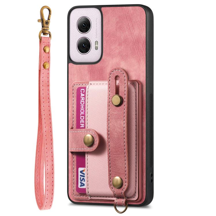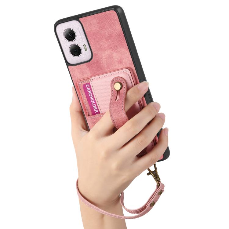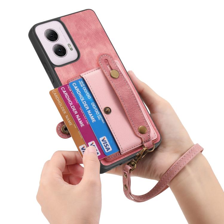 Funda Cuero Tipo Billetera con Correa Cruzada para Motorola Moto G Power 5G (2024) (Rosa)