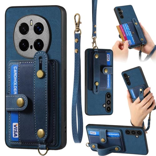 Funda de Cuero Tipo Billetera con Correa Cruzada para Honor Magic7 Pro (Azul)
