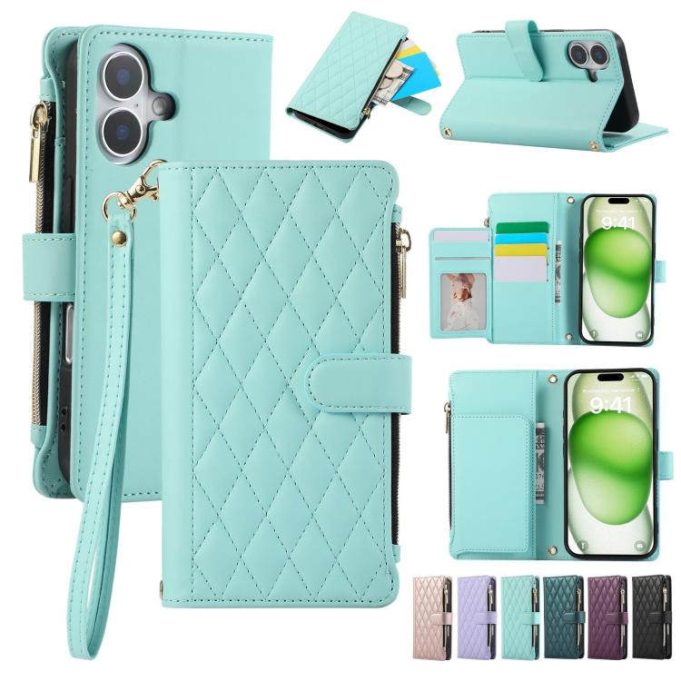 Funda de Cuero Tipo Billetera con Cremallera para iPhone 16 (Cian)