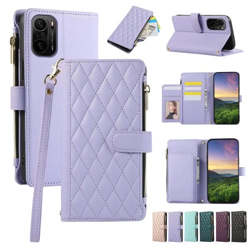 Funda de Cuero Tipo Billetera con Cremallera En Forma de Rombo para Redmi K40 (Morado)