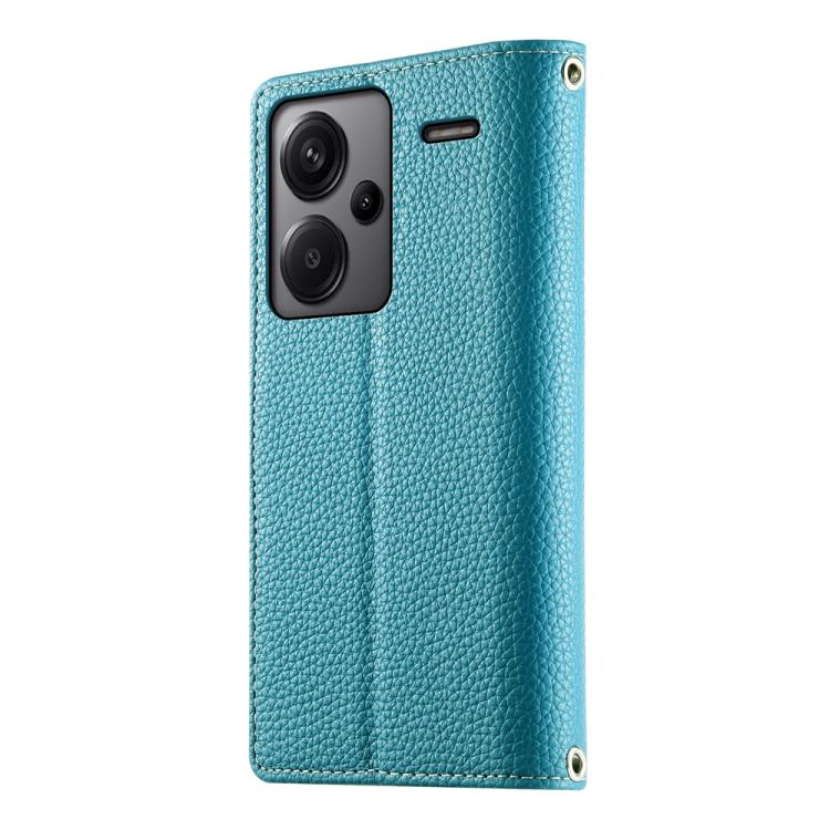 Funda de cuero tipo billetera con cremallera para Redmi Note 13 Pro+, con costuras globales y correa corta (azul)