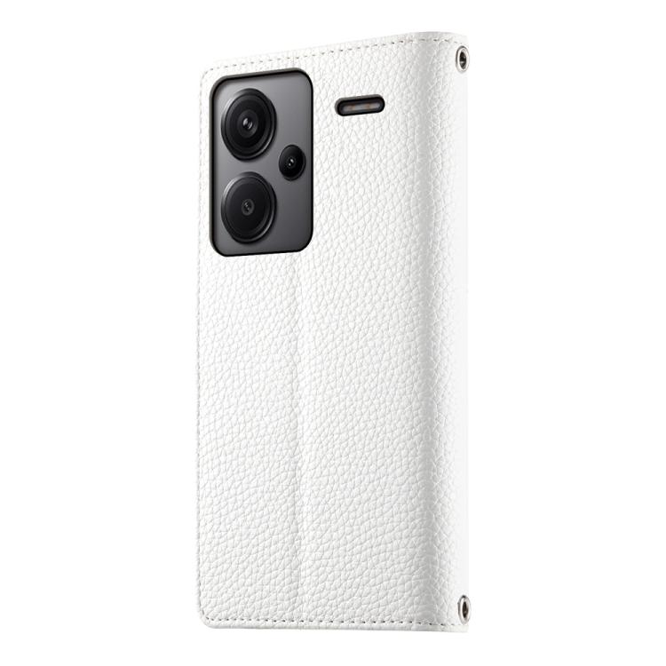 Funda de cuero tipo billetera con cremallera para Redmi Note 13 Pro+, con costuras globales y correa corta (blanca)