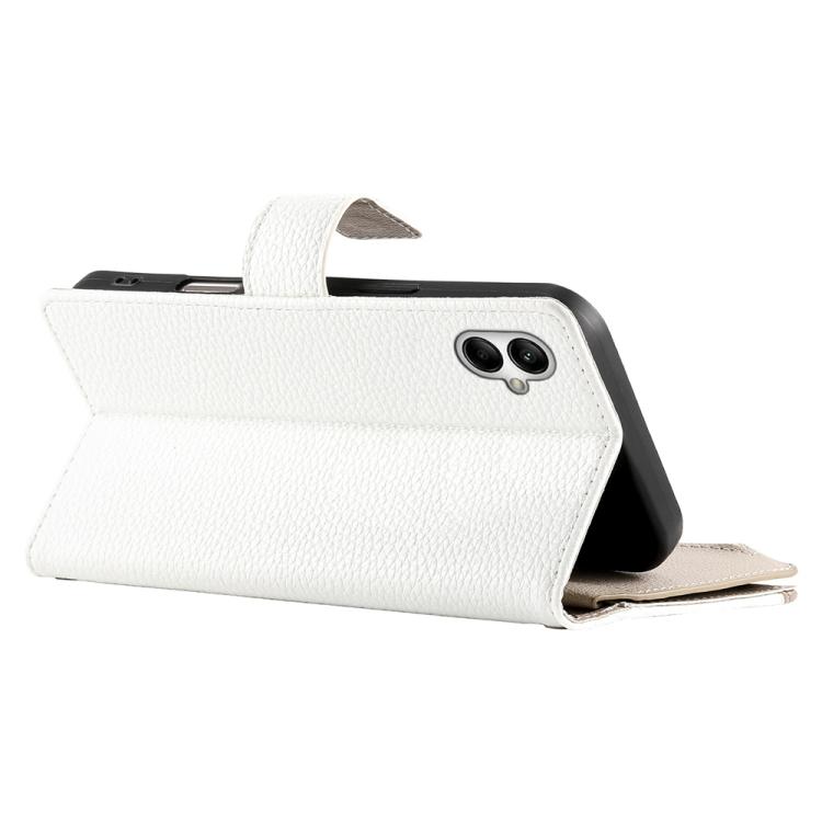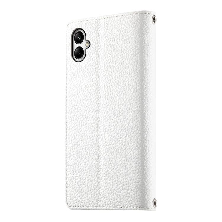 Funda de cuero tipo billetera con cremallera para Samsung Galaxy A05, con costuras y correa corta (blanca)