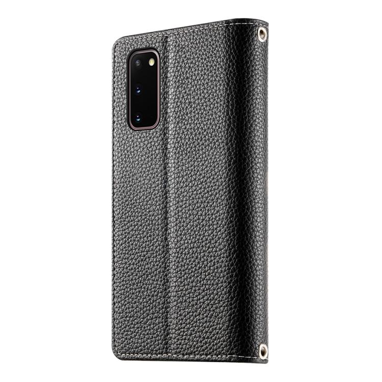 Funda de cuero tipo billetera con cremallera para Samsung Galaxy S20 con costuras y correa corta (negra)
