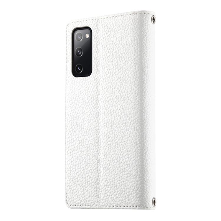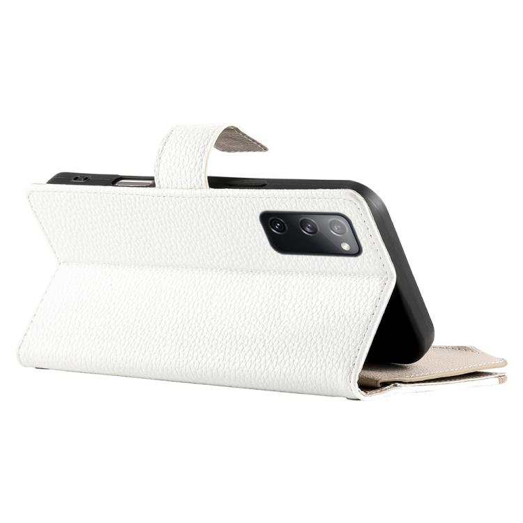 Funda de cuero tipo billetera con cremallera para Samsung Galaxy S20 FE, con costuras y correa corta (blanca)