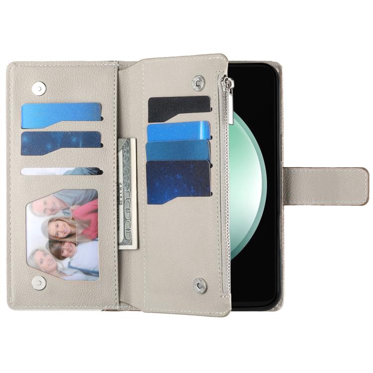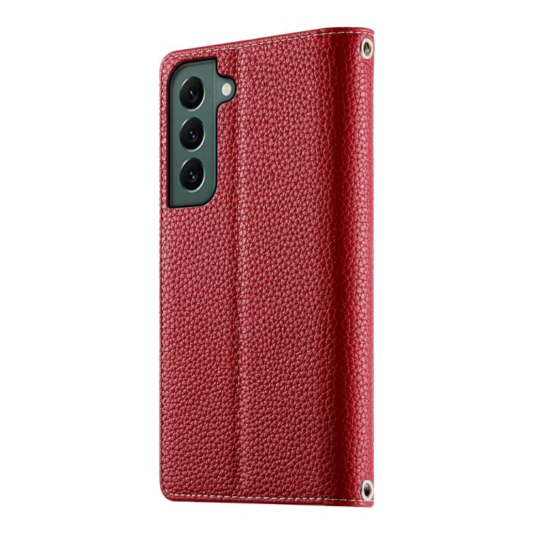Funda de cuero tipo billetera con cremallera para Samsung Galaxy S22+ 5G, con costuras, múltiples tarjetas y correa corta (roja)