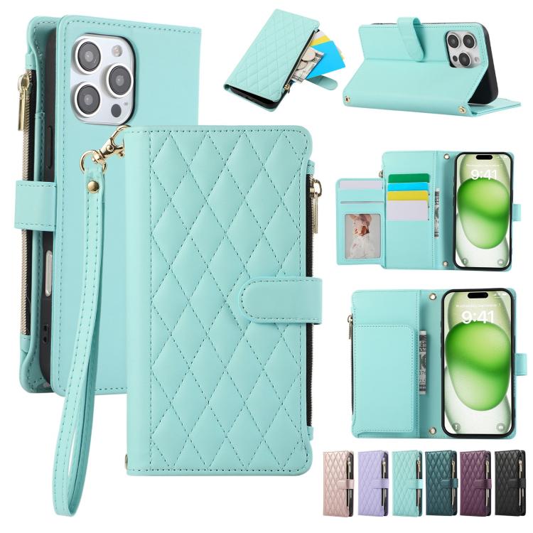 Funda tipo billetera Rombal para iPhone 16 Pro Max con cremallera (Cian)